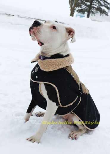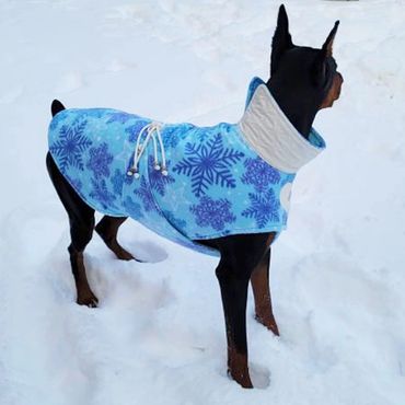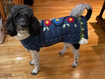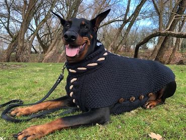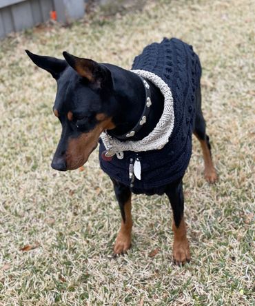 meet Feefee the Doberman/Corso mix in her new custom made TUNDRA Sweater , hand knitted cotton.